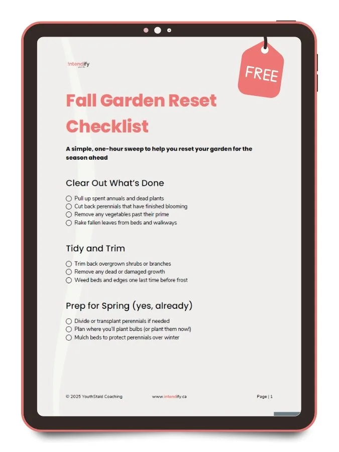 A fall garden reset isn’t about impressing your neighbours. It’s about removing stress you’ve stopped noticing and choosing what you want to live with. Small shifts, done on purpose, can give you energy and peace of mind. So pick one thing. Tackle it today. You might be surprised how much lighter everything feels once you do.